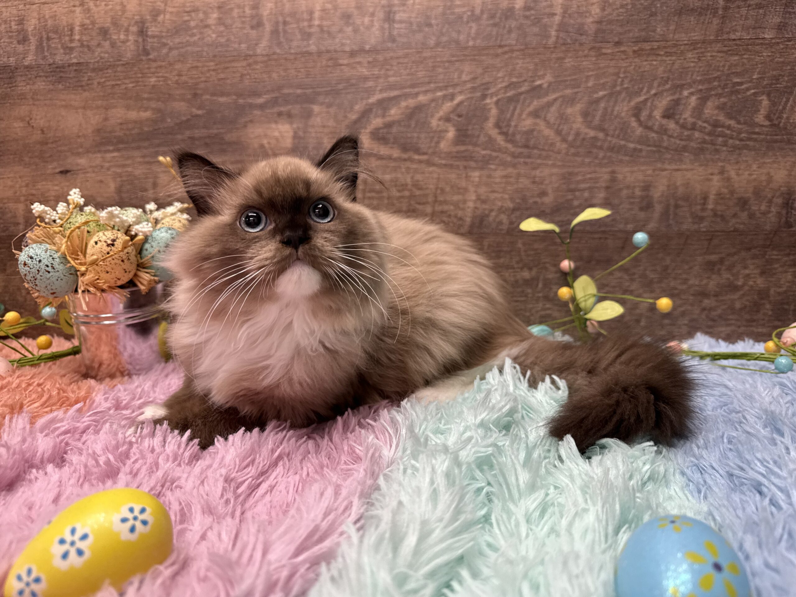 We can create any color of Ragdoll depending on the litter. Seal, Blue, Red, Chocolate, Lilac & Cinnamon in Traditional, Mink, Sepia, Solid, Tortie, Mitted, Bicolor, Colorpoint, Lynx and Torbie!